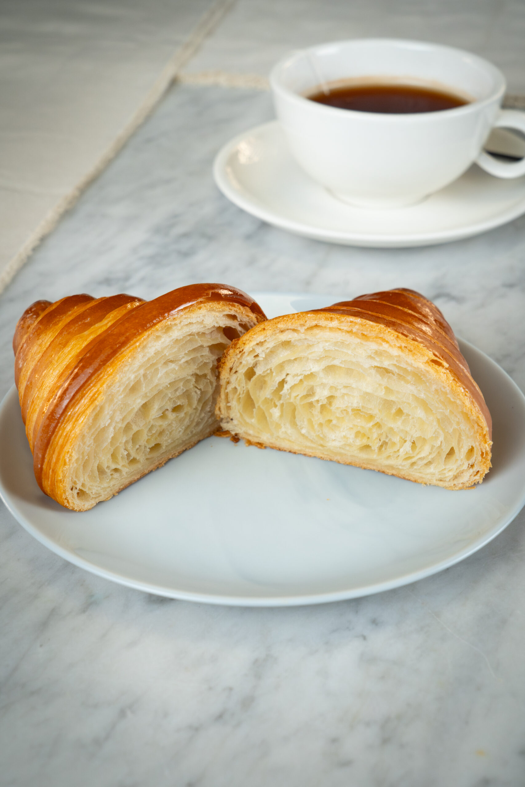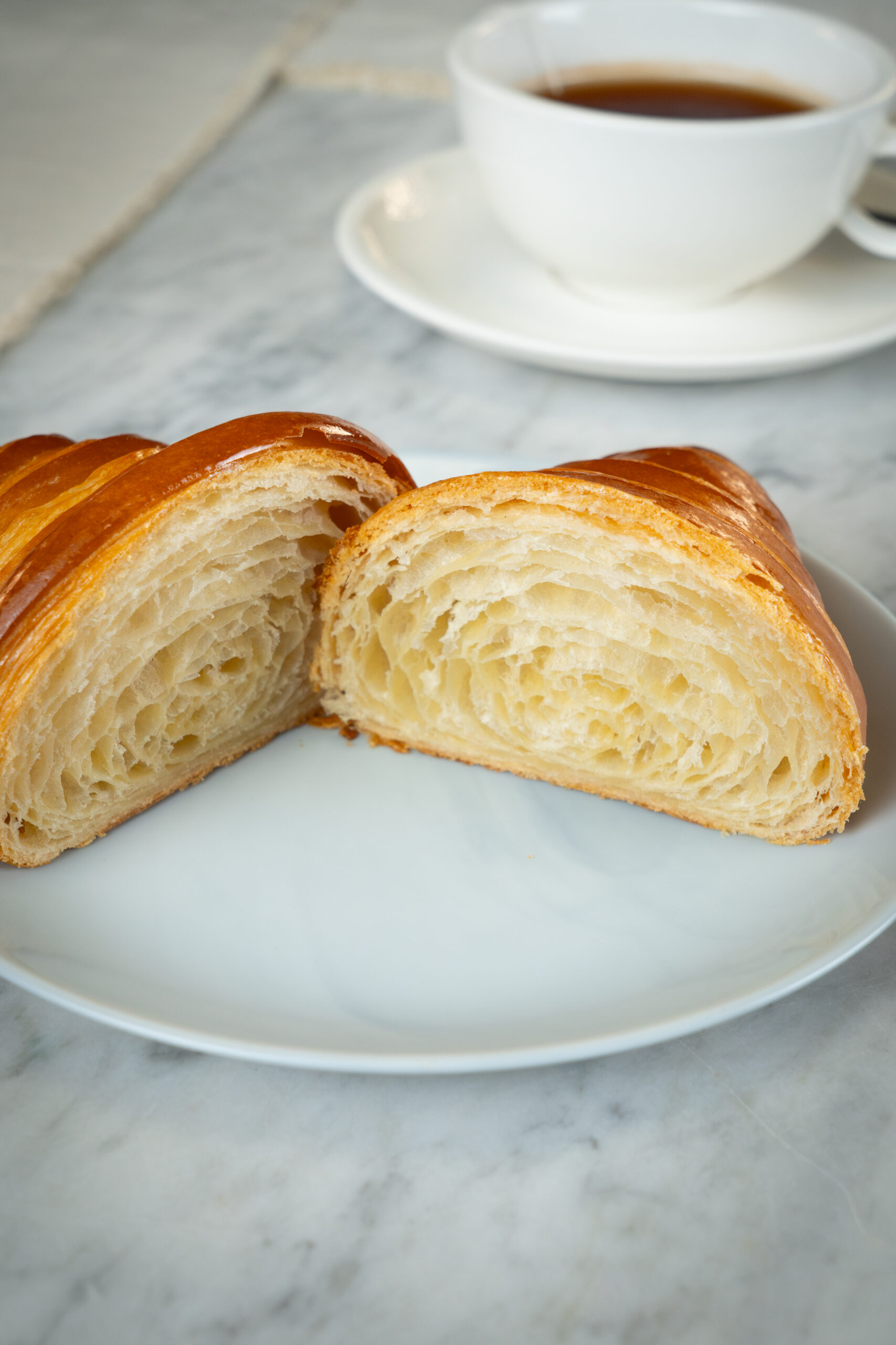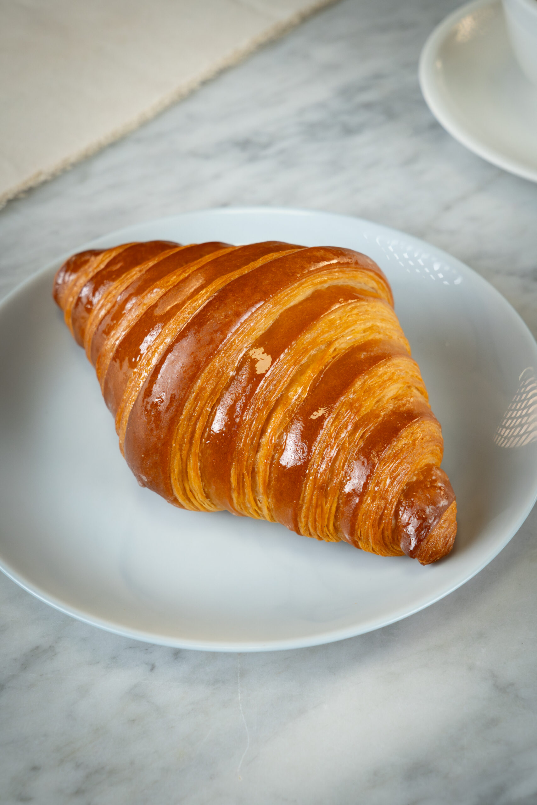 Nuestro Croissant Clásico es una pieza de pastelería tradicional, elaborada con mantequilla real y una masa hojaldrada de fermentación lenta que garantiza un interior suave y alveolado, y una corteza dorada y crujiente.